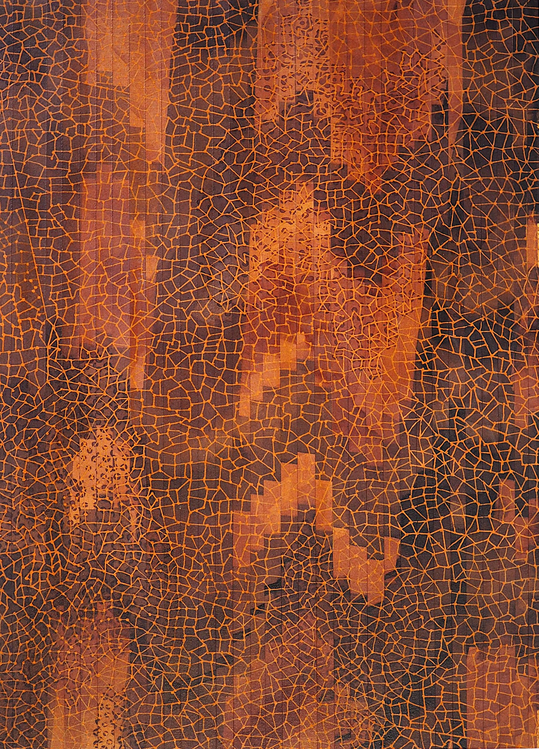 George Steinmann, Départs, 1998/2006, Blackberry juice, (1998) shellac, copper pen on handmade paper, cut, 60 x50 cm.