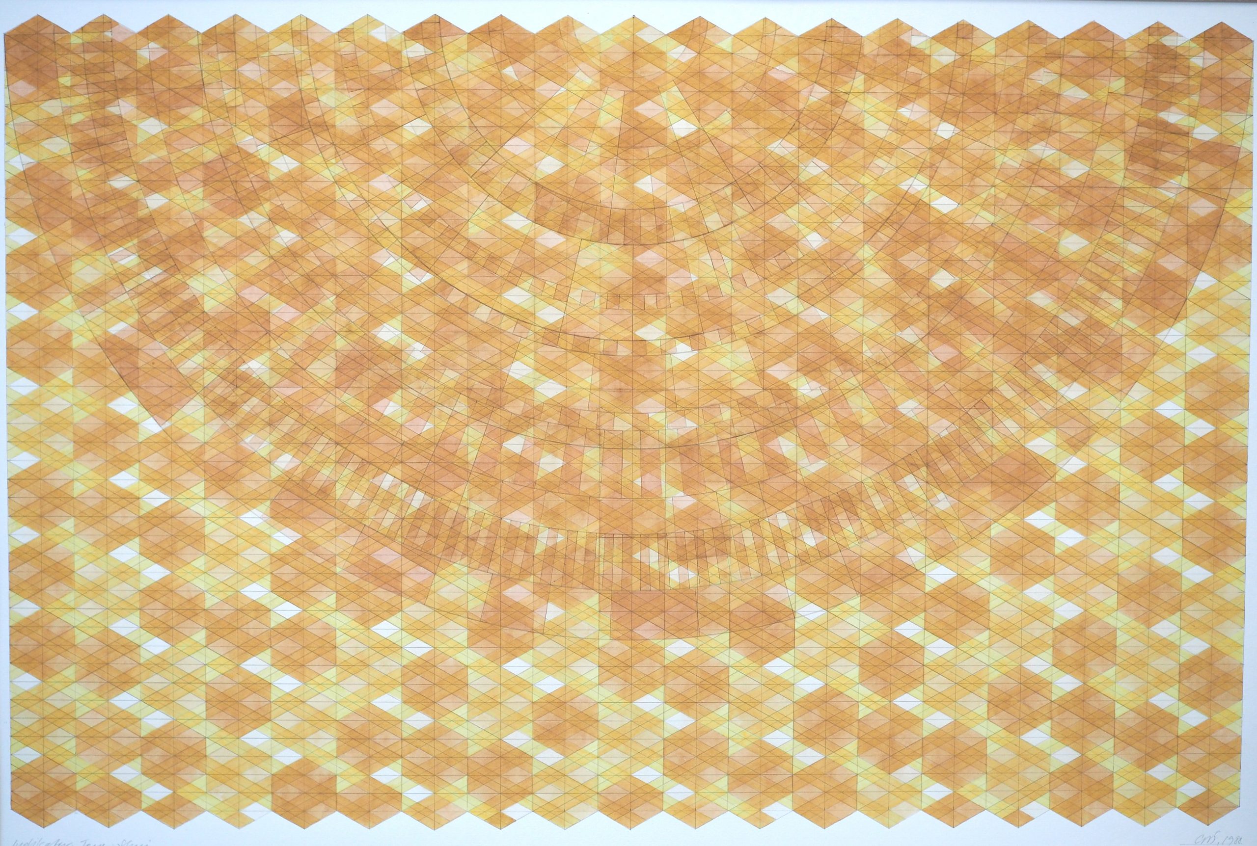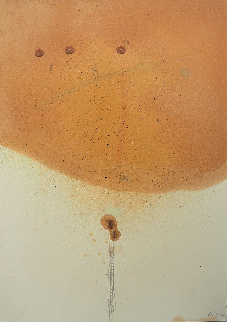 George Steinmann, Indikator. Feng-Shui, 1988, Fern juice (Polystichum), Watercolor (Naples yellow), pencil on handmade paper, 80 x 110 cm.