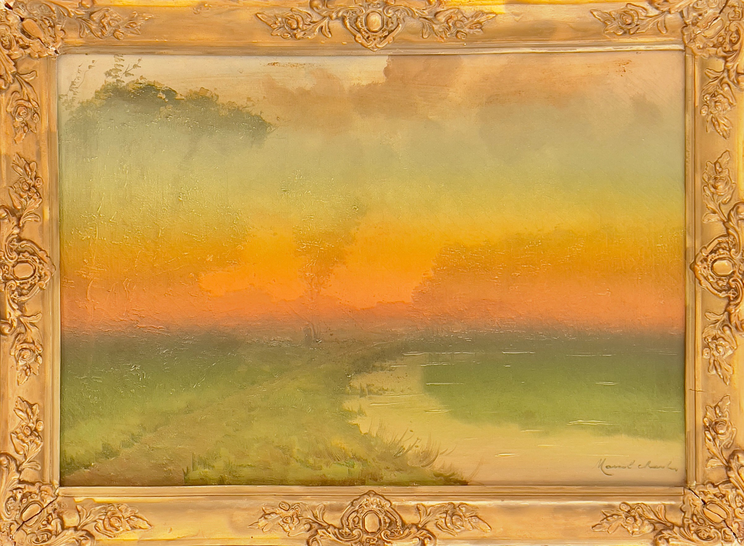 Mathias Kessler, After J.M.W. Turner: Landscape with a Tree on the Right (Photo), 2024, Airbrush on Alu-Dibond, with an oak painter's frame, 24.6 × 34 cm