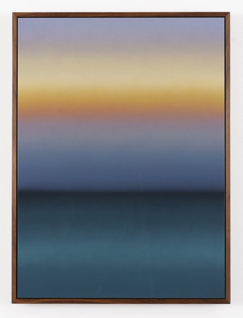 Mathias Kessler, After Casper David Friedrich; Sea Beach in the Fog II, 2023, Airbrush on Alu-Dibond,with a walnut painter's frame, 34.5 × 52 cm