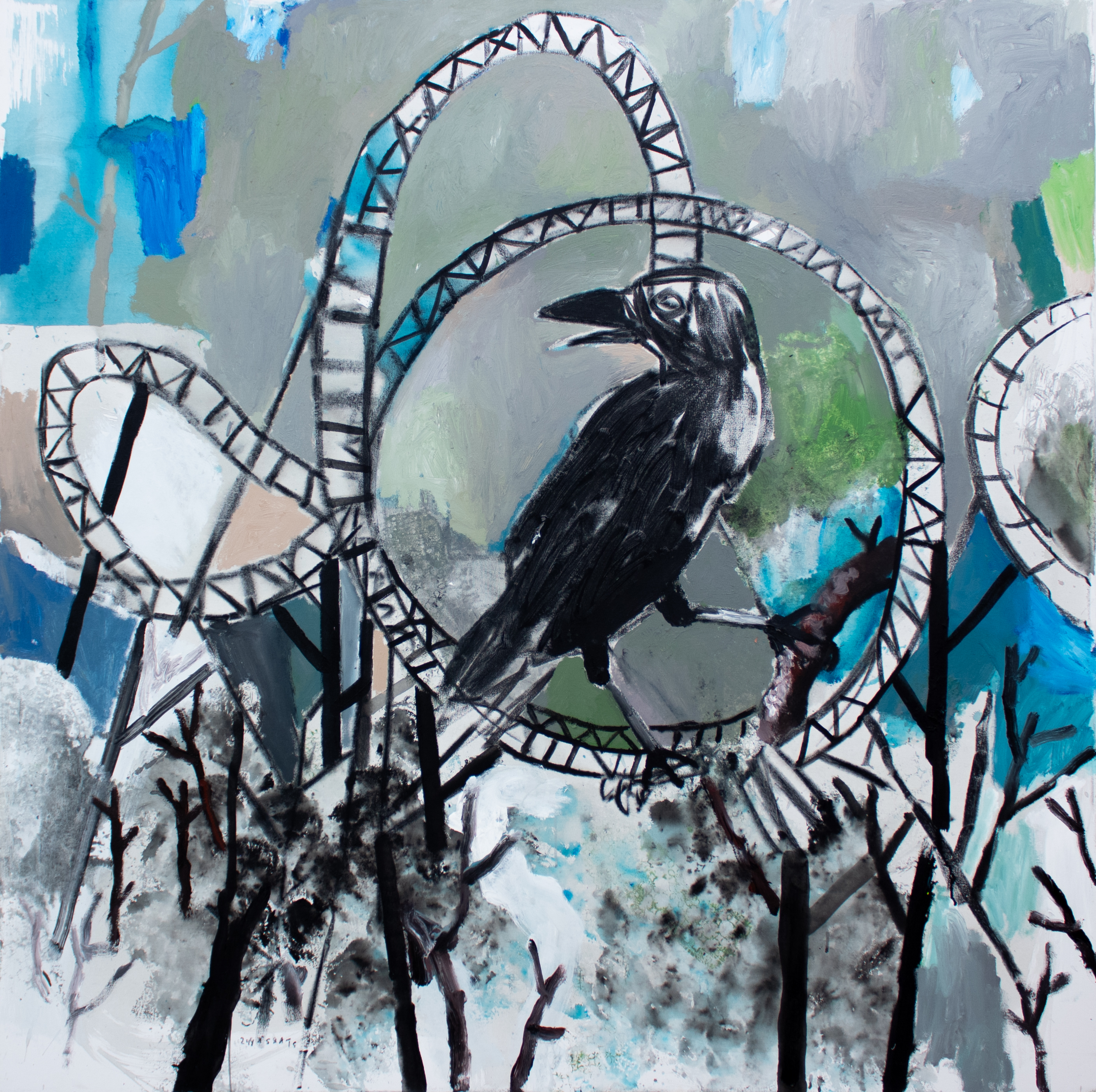 Starsky Brines, QUIERO CONTARLES UNA HISTORIA, 2026, acryl and crayon on canvas, 150 x 150 cm